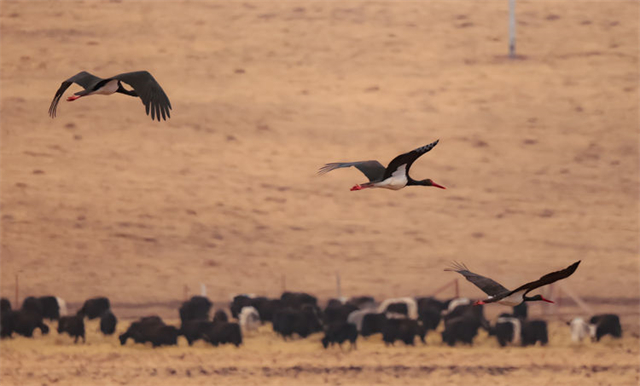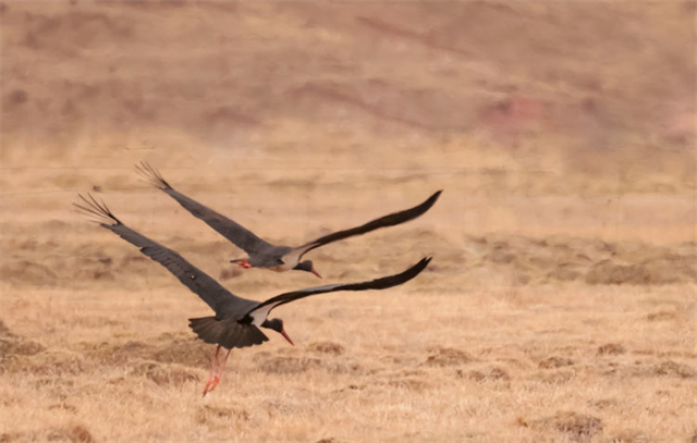 近日,有攝影師在祁連山國家公園亂海子濕地拍攝記錄到4只國家一級(jí)重點(diǎn)保護(hù)野生動(dòng)物——黑鸛,它們時(shí)而低頭覓食、時(shí)而展翅飛翔。黑鸛是一種體態(tài)優(yōu)美、體色鮮明、性情機(jī)警的大型涉禽,屬世界瀕危鳥類之一,在中國僅有1000多只,珍稀程度不亞于大熊貓,因此也有“鳥中大熊貓”之稱。