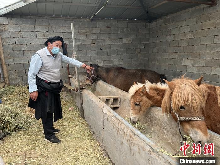 4月27日,才哇在生態(tài)畜牧業(yè)合作社內飼喂馬匹。 中新社記者 李江寧 攝