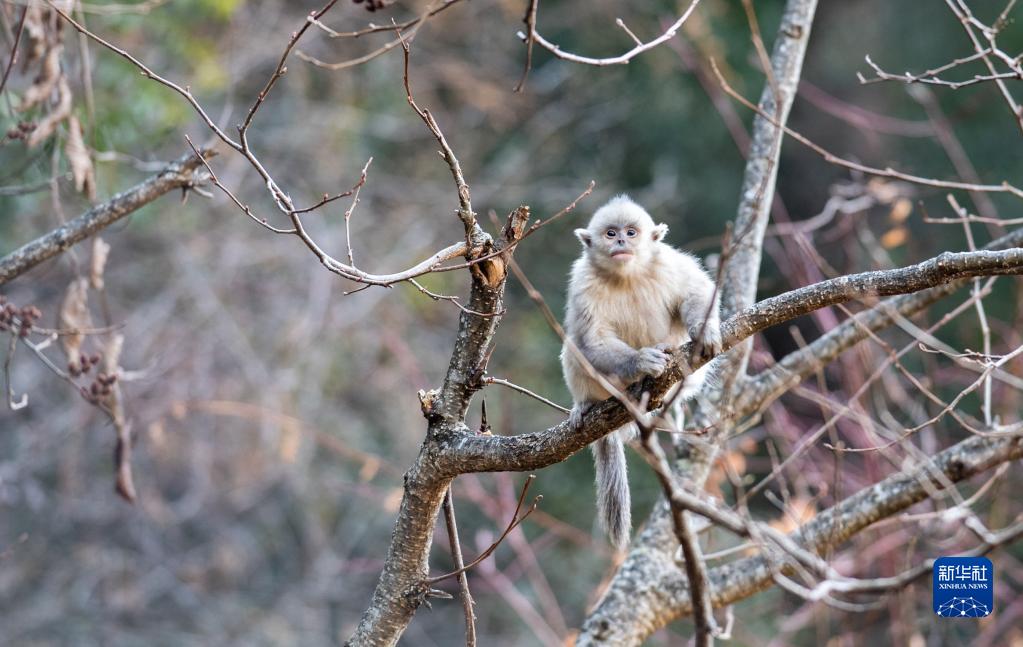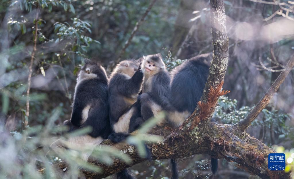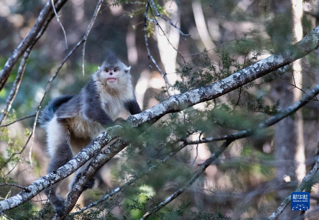 圖為3月13日在云南白馬雪山國(guó)家級(jí)自然保護(hù)區(qū)內(nèi)拍攝的滇金絲猴。新華社記者王冠森 攝