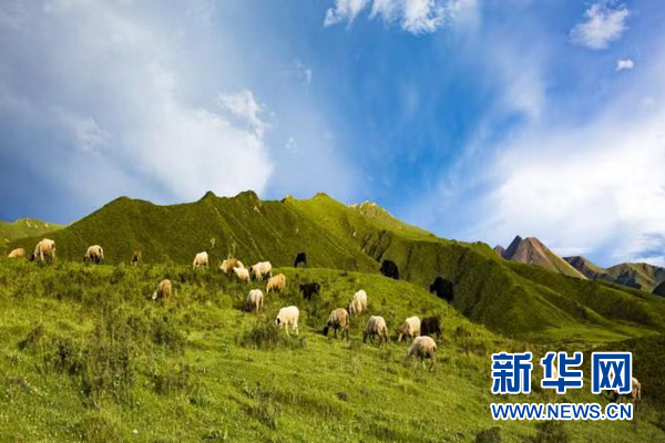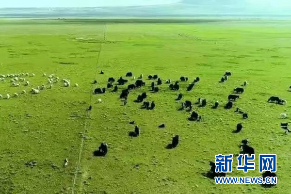 海南州興海縣一處牧場(chǎng)上牛羊在覓食。新華網(wǎng)發(fā)