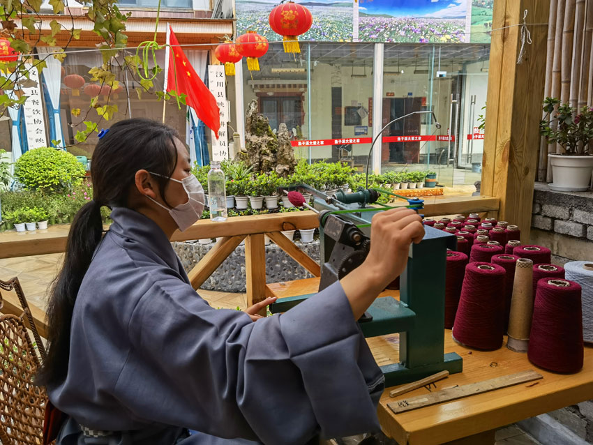 2022年5月12日,“5·12”汶川特大地震抗震救災(zāi)14周年紀(jì)念日,山鷹帶著幾個員工來到漁子溪,在汶川縣黨委、映秀鎮(zhèn)黨委、漁子溪村兩委及當(dāng)?shù)厝罕姷臒崆閹椭?,舉辦了“藍(lán)措馬”品牌圍巾展示活動。村里還積極幫助他們尋找合適的房屋作為編織車間,讓他們先在漁子溪站住腳。