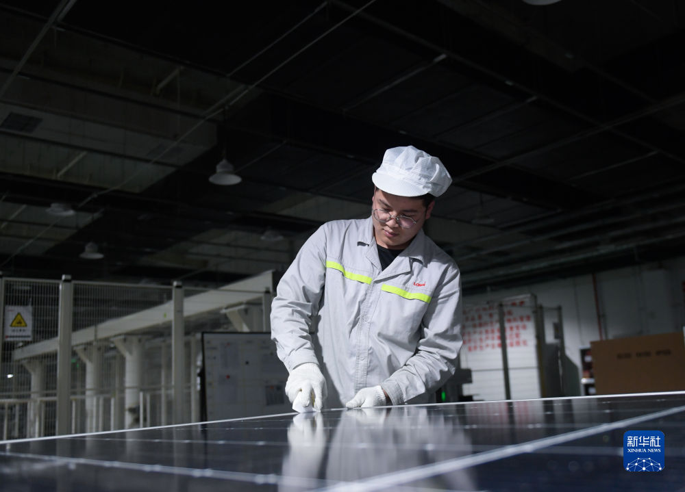 6月7日,青海隆基樂葉光伏科技有限公司工人在工廠內(nèi)檢查光伏組件。新華社記者 張龍 攝