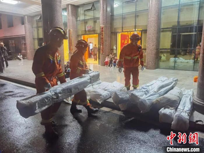 救援人員正在搬運(yùn)帳篷等物資。四川應(yīng)急廳供圖