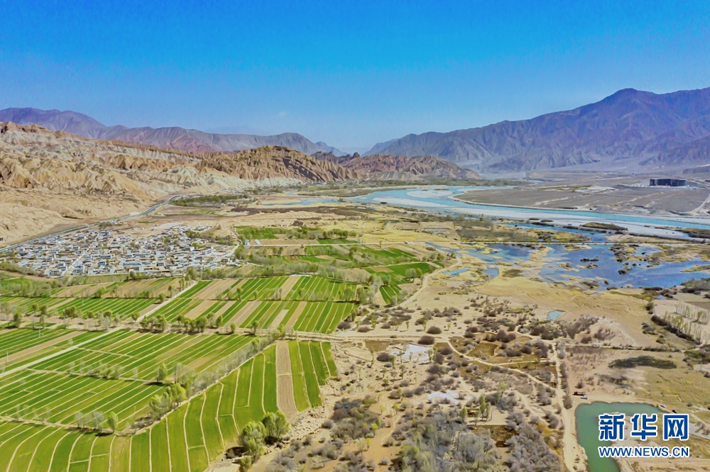 航拍貴德縣黃河岸畔綠意盎然。馬銘言 攝