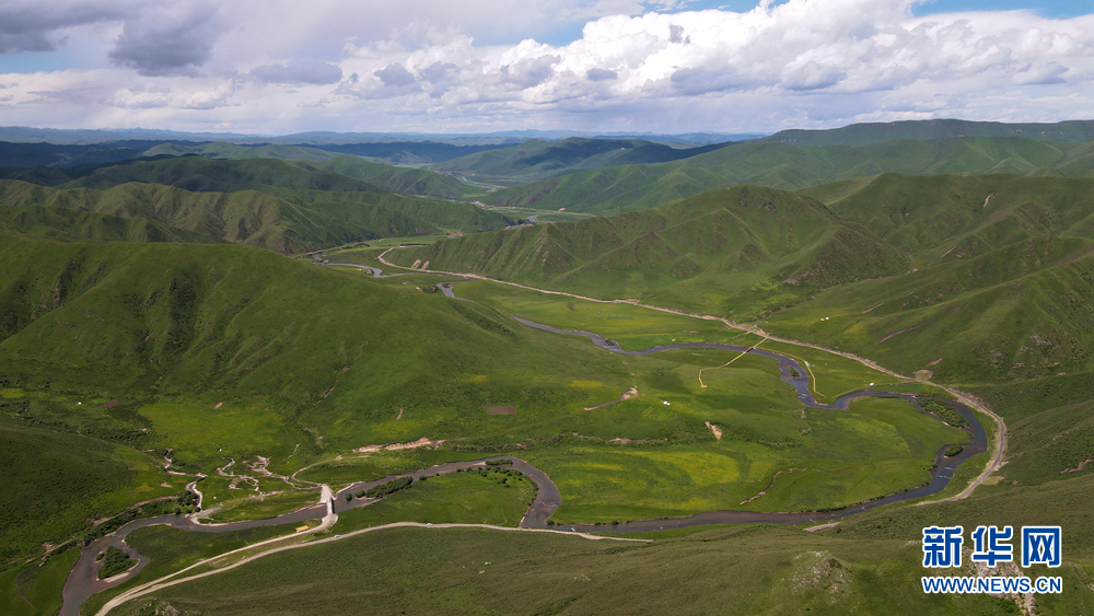 時(shí)值盛夏,青海省黃南藏族自治州河南蒙古族自治縣境內(nèi)的青海洮河源濕地公園,奇峰聳立、水草豐美。藍(lán)天白云之下,高山與草原相映,風(fēng)光旖旎、如詩(shī)如畫。