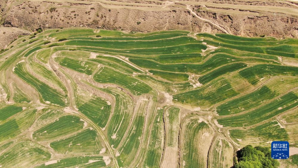2022年6月16日,黃南藏族自治州同仁市黃乃亥鄉(xiāng)日秀瑪村內(nèi),黑青稞長勢喜人(無人機(jī)照片)。新華社記者 王艷 攝