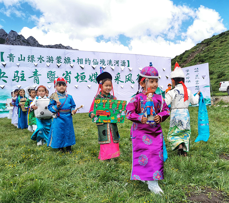 綠草如茵的大草原,成群的牛羊,清澈的洮河水,不時從山頭飄過的朵朵白云,在這樣一副如畫的景色里,河南縣中心幼兒園、賽龍鄉(xiāng)中心寄宿制完全小學(xué)的一堂戶外生態(tài)體驗課正在這里進行。