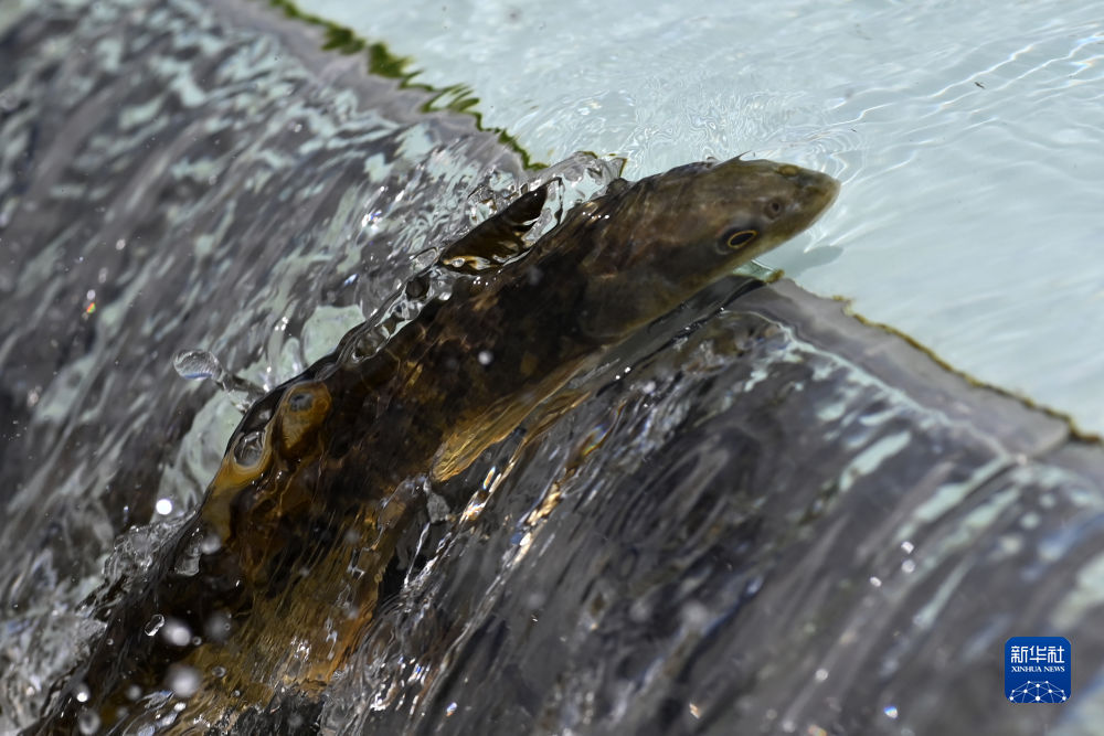 6月30日,泉吉河中的一群湟魚正在逆流洄游。新華社記者 范培珅 攝