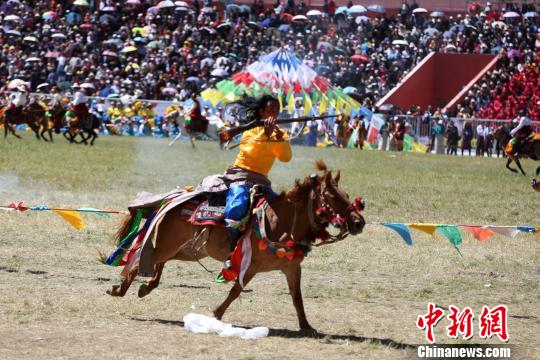 每年夏季,該縣各鄉(xiāng)村藏族民眾都會(huì)舉行精彩的賽馬、賽牦牛、背沙袋等民族傳統(tǒng)體育賽事。
