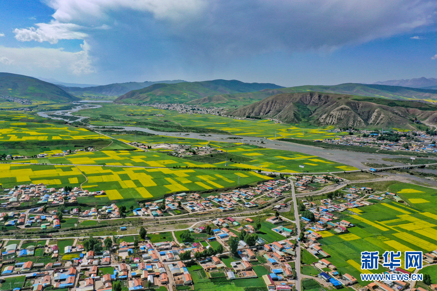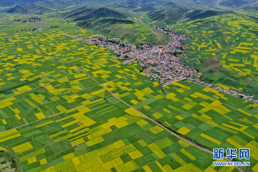 航拍門源縣油菜花海。新華網 宋忠勇 攝