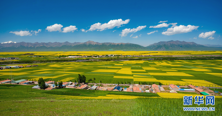 圖為門源縣油菜花海。新華網 宋忠勇 攝