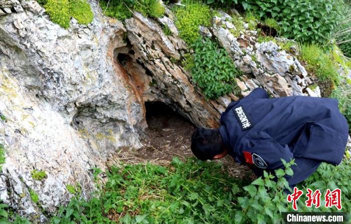 工作人員成功發(fā)現(xiàn)母豹居住的山洞。甘孜縣林草局供圖