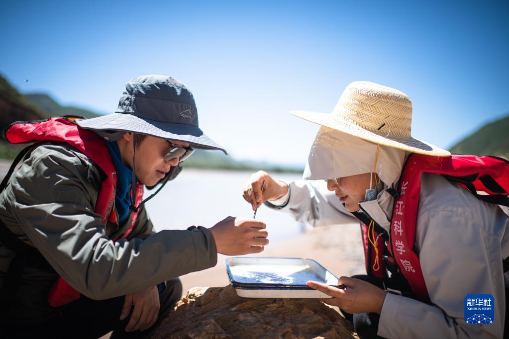 7月24日,長江科學院科考隊員劉晗(右)在瀾滄江源區(qū)的扎曲采集魚類樣本。新華社記者 肖藝九 攝