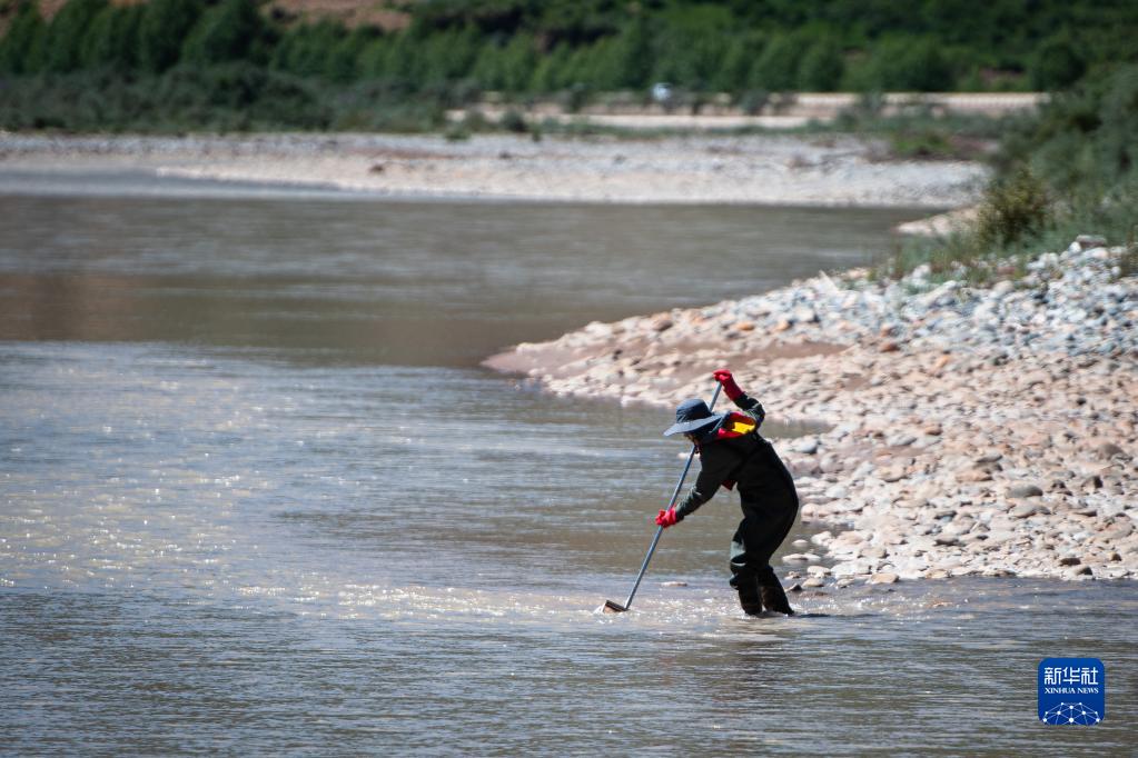 7月24日,長江科學院科考隊員劉晗在瀾滄江源區(qū)的扎曲采集魚類樣本。新華社記者 肖藝九 攝