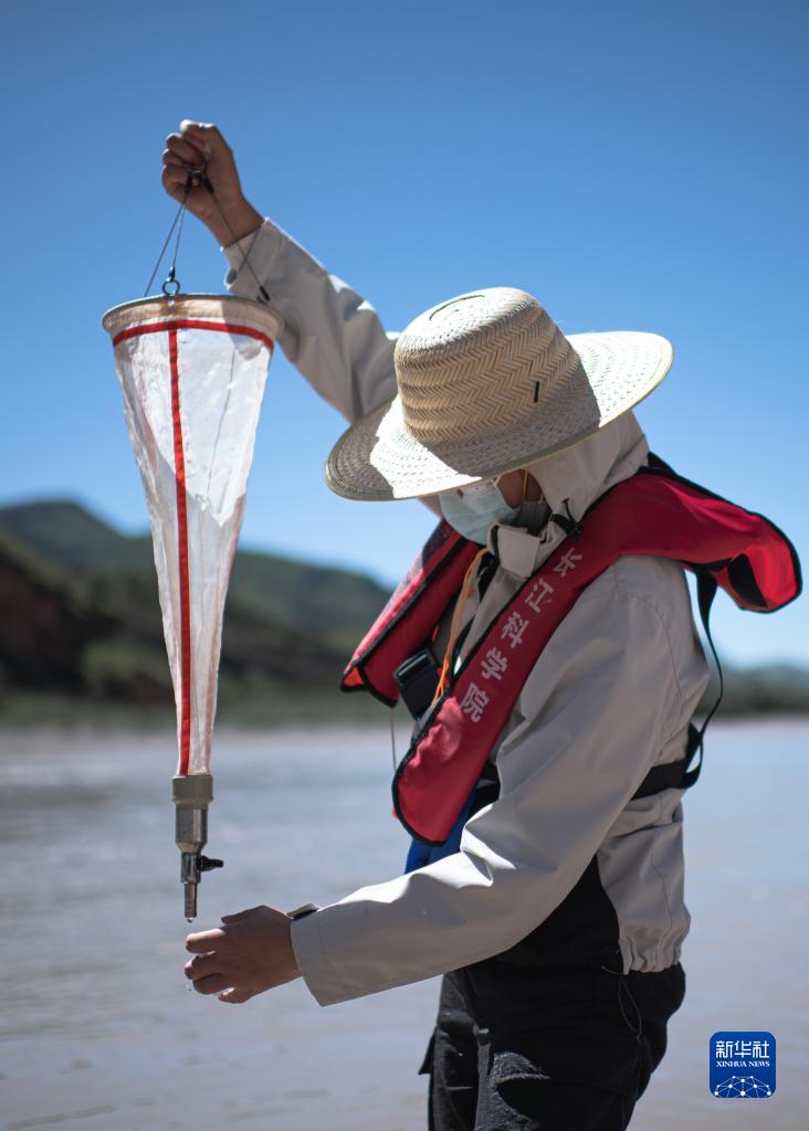 7月24日,長江科學院科考隊員李魯?shù)ぴ跒憸娼磪^(qū)的扎曲采集浮游動物樣本。新華社記者 肖藝九 攝