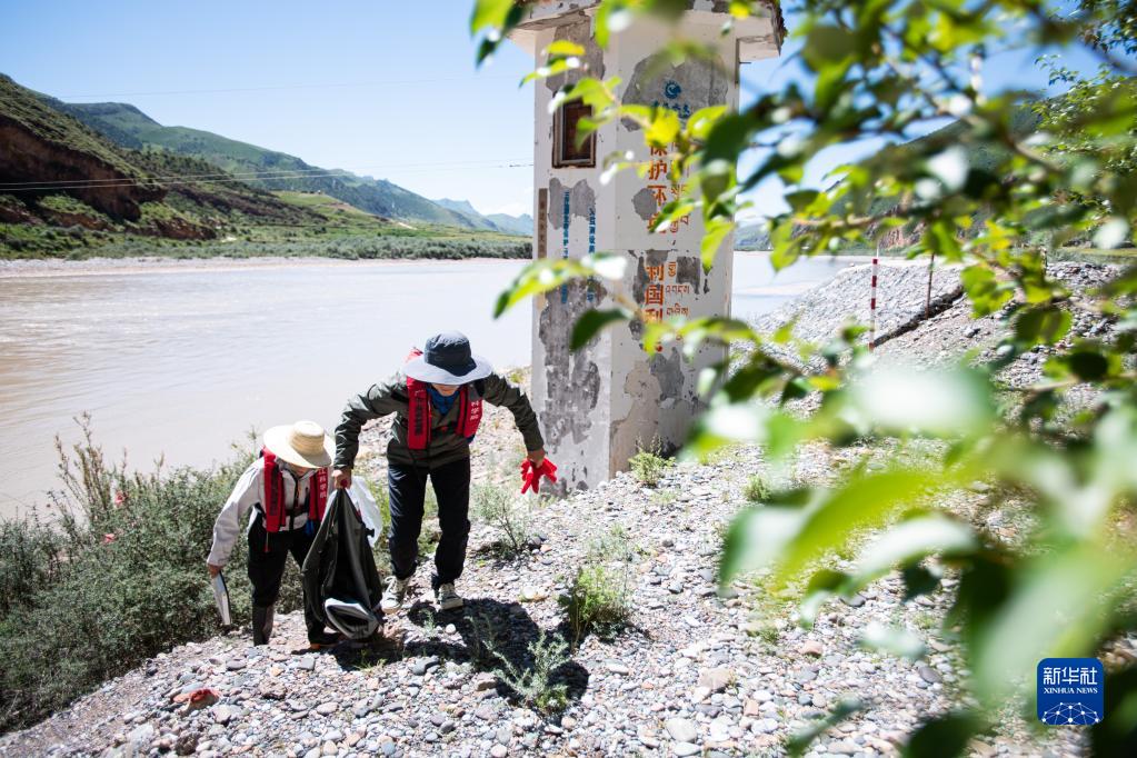 7月24日,長江科學院科考隊員李魯?shù)ぃㄓ遥┡c劉晗在瀾滄江源區(qū)的扎曲采集底棲動物樣本。新華社記者 肖藝九 攝