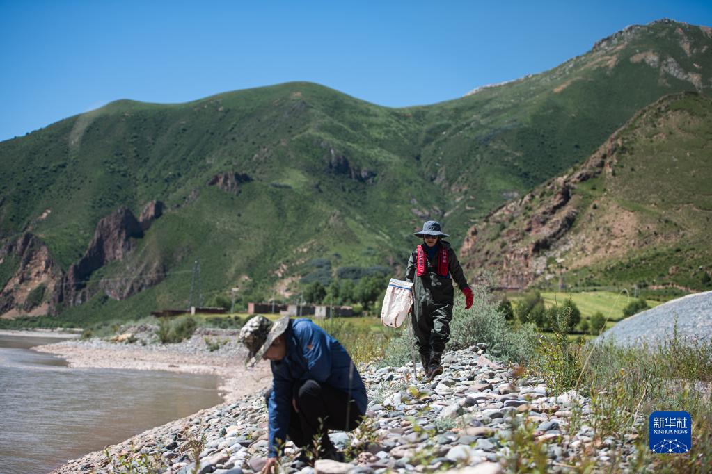 7月24日,長江科學院科考隊員在瀾滄江源區(qū)的雜多進行水生生物樣本采集。新華社記者 肖藝九 攝