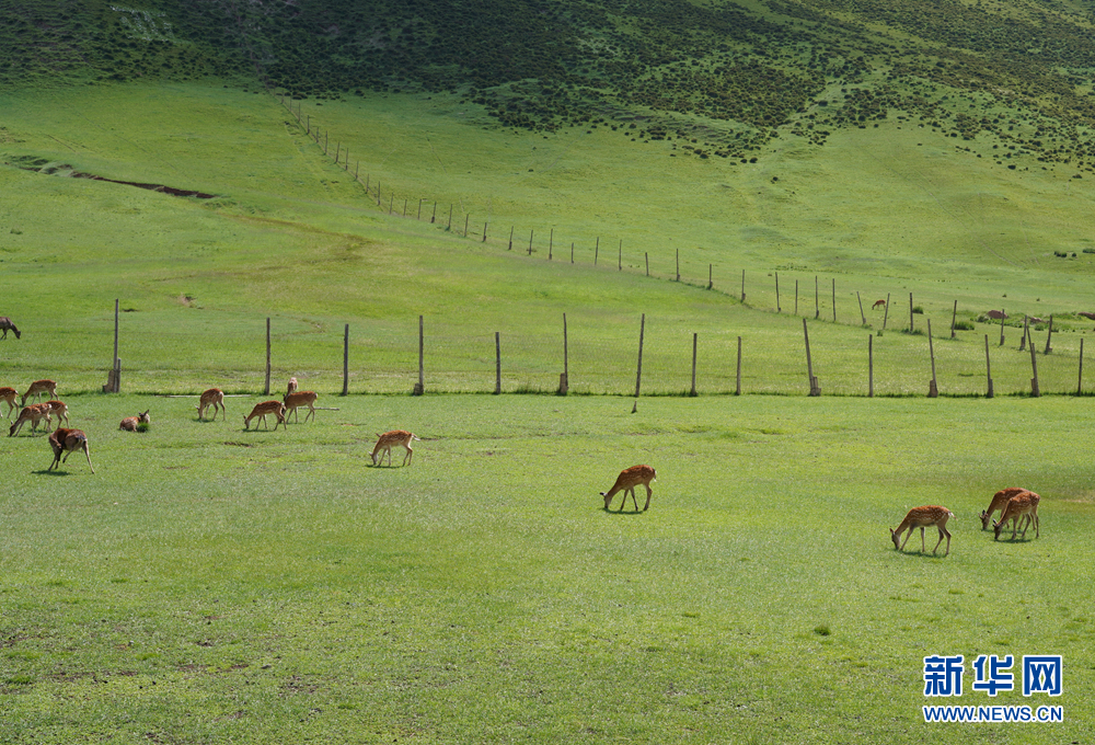 盛夏時(shí)節(jié),青海省海北藏族自治州祁連縣的祁連鹿場(chǎng),綠草如茵,鹿鳴沃野。