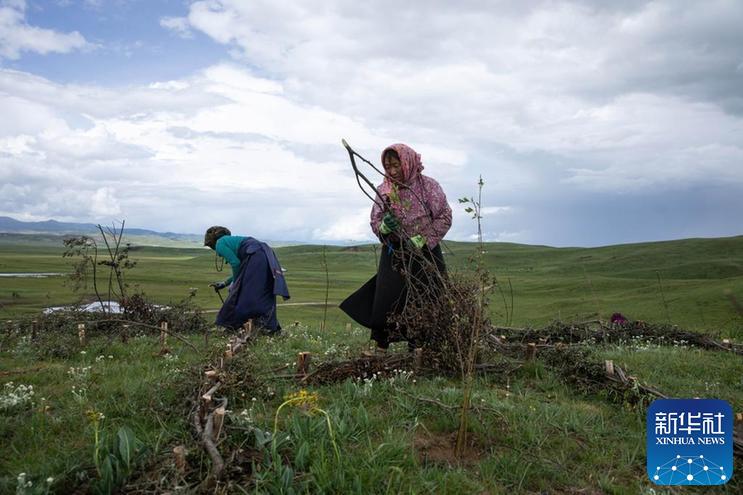 從五月底開(kāi)始,四川省若爾蓋縣麥溪鄉(xiāng)黑河村村民在當(dāng)?shù)卣M織下,抓住雨水季節(jié)的有利時(shí)機(jī),在草場(chǎng)開(kāi)展防沙治沙工作。