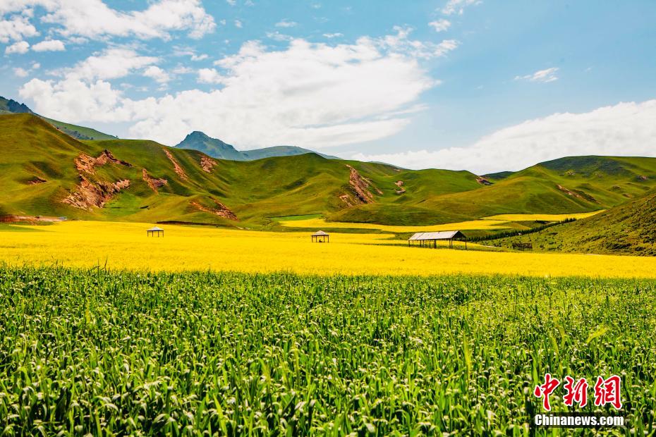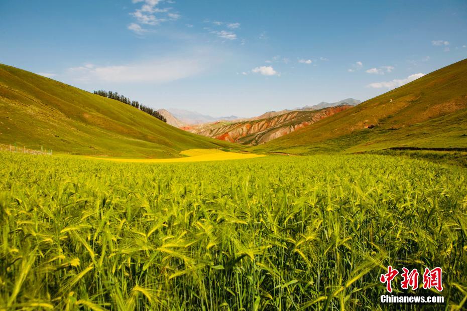 盛夏時節(jié),走進青海海北藏族自治州祁連縣,親臨卓爾山讓人感覺到這里環(huán)境幽靜,空氣清新,風景秀麗,數(shù)十條褶皺山脈縱橫捭闔,紅色的砂巖礫石放射出丹霞地貌特有的光采。平緩的坡地上,油菜花、青稞,牧草、鮮花、原始森林相互間雜,田野、村莊與大自然融為一體,在大地上描繪出一幅氣勢恢弘色彩斑斕的畫卷。 趙海梅 攝