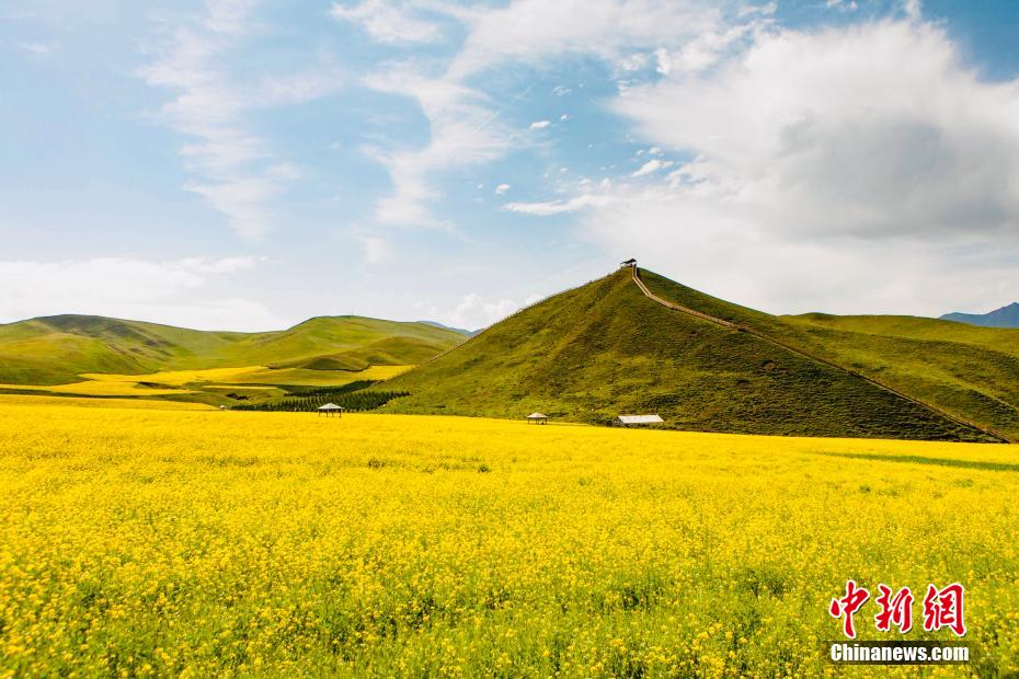 圖為金黃色油菜花如同地毯一般。趙海梅 攝