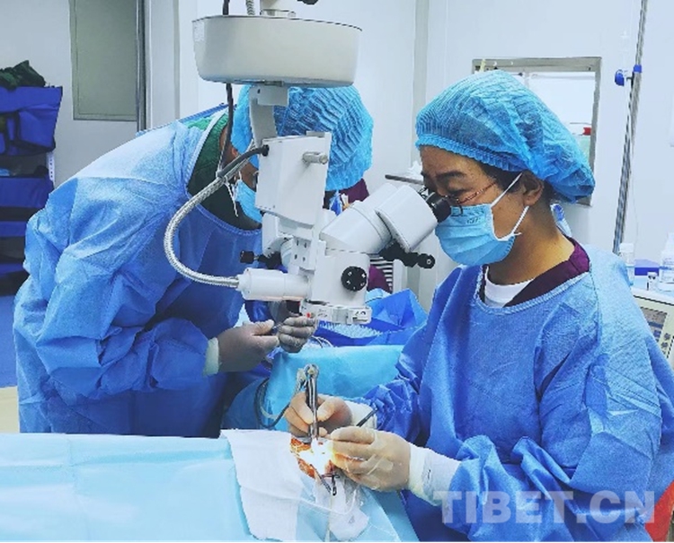 白內(nèi)障手術(shù)持續(xù)了4天,手術(shù)主要由郭娟主任醫(yī)師、胡茵副主任醫(yī)師、朱敬主治醫(yī)師、張芝琳醫(yī)師和格乃桑登醫(yī)師共同完成,為了弘揚“傳幫帶”精神,郭娟親自指導當?shù)匮劭漆t(yī)師——格乃桑登為患者完成了一臺白內(nèi)障手術(shù)。