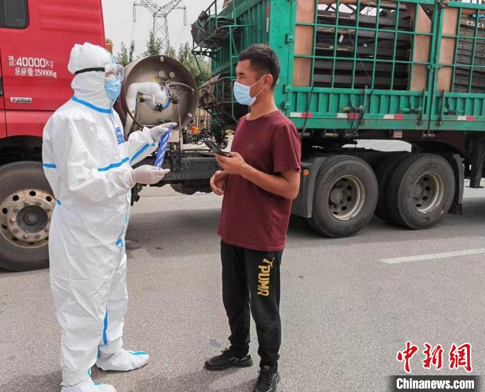 圖為吳遠(yuǎn)孝在高速卡口對(duì)進(jìn)入德令哈市區(qū)的車貼封條?!沁h(yuǎn)孝 供圖