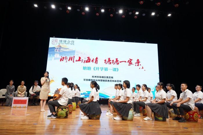 9月1日,在四川省甘孜州理塘縣二中報(bào)告廳內(nèi),進(jìn)行了一場(chǎng)別開(kāi)生面的開(kāi)學(xué)第一課。相隔2500公里的四川省甘孜州理塘縣二中和浙江省杭州市錢(qián)塘區(qū)下沙中學(xué)的學(xué)子們,一起“跨越千山萬(wàn)水”,通過(guò)視頻連線(xiàn)開(kāi)展了一場(chǎng)充滿(mǎn)著喜悅、溫情、感動(dòng)和希望的新學(xué)期課程。