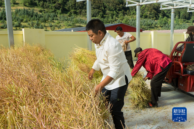 “高原氣候多變,熟了就要抓緊收?!睍駡隼铮蒸敶妩h支部書記侯正鑫和村民們不停地把油菜桿從車上卸下來,寬闊的曬場被金黃色一點(diǎn)點(diǎn)充溢起來。