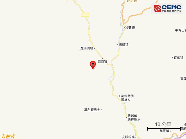 四川甘孜州瀘定縣發(fā)生6.8級地震 震中距成都市226公里
