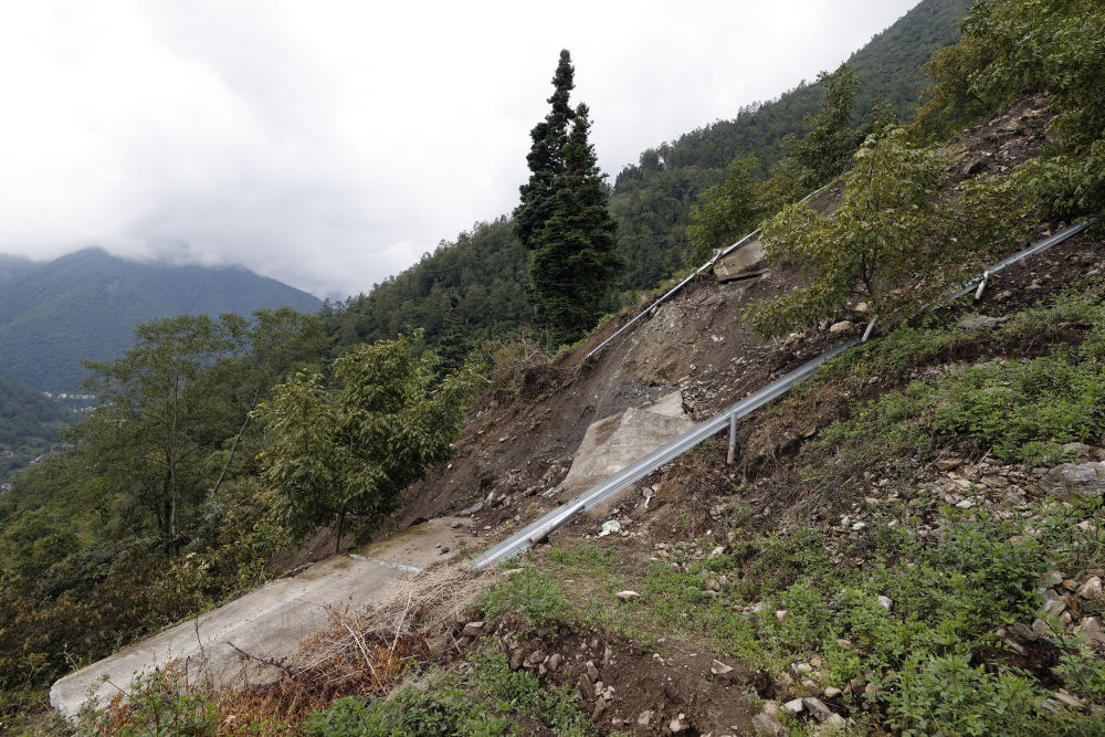 9月7日在王崗坪彝族藏族鄉(xiāng)拍攝的損毀道路。