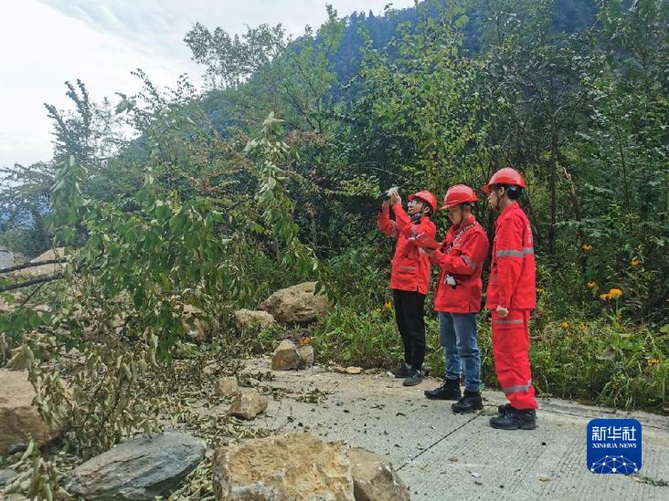 9月7日,四川省冶勘設(shè)計(jì)集團(tuán)有限公司的調(diào)查隊(duì)員在海螺溝景區(qū)內(nèi)進(jìn)行地質(zhì)災(zāi)害應(yīng)急排查工作。新華社發(fā)(四川省冶勘設(shè)計(jì)集團(tuán)有限公司供圖)