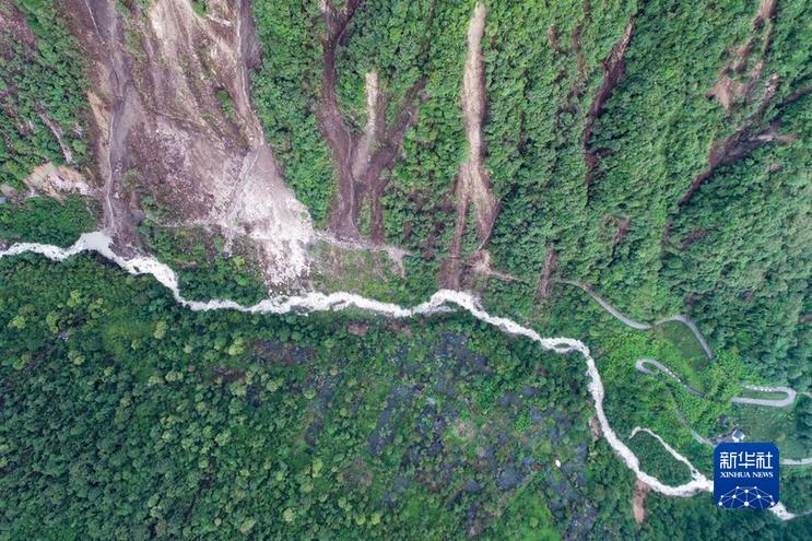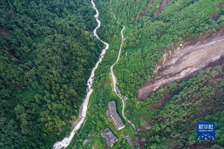 這是9月7日拍攝的海螺溝景區(qū)一號營地下游處的崩塌災(zāi)害現(xiàn)場(左上部分)(無人機(jī)照片)。新華社發(fā)(四川省冶勘設(shè)計(jì)集團(tuán)有限公司供圖)