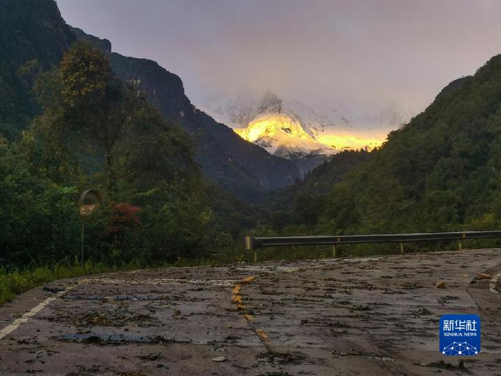 這是9月10日拍攝的海螺溝景區(qū)內(nèi)部道路和貢嘎雪山側(cè)峰。新華社發(fā)(四川省冶勘設(shè)計(jì)集團(tuán)有限公司供圖)