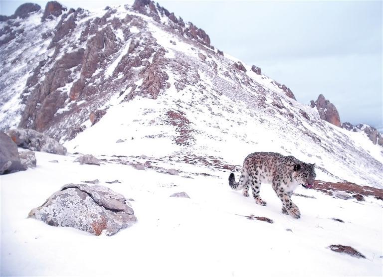 紅外線相機(jī)監(jiān)測(cè)到的國家一級(jí)保護(hù)動(dòng)物雪豹。甘南州生態(tài)環(huán)境局供圖