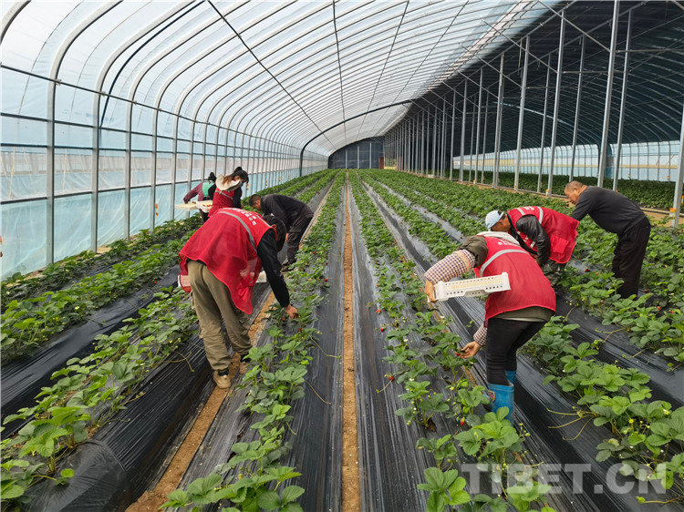 中國(guó)西藏網(wǎng)訊 時(shí)下,在四川省甘孜藏族自治州理塘縣濯?,F(xiàn)代農(nóng)業(yè)產(chǎn)業(yè)園區(qū),120畝草莓經(jīng)過(guò)100天的生長(zhǎng)后迎來(lái)了收獲季。走進(jìn)園區(qū)康呷村種植基地,大棚里的草莓長(zhǎng)勢(shì)喜人,當(dāng)?shù)?0多名農(nóng)牧民群眾正忙著梳葉、采摘,大棚里四處洋溢著豐收的喜悅?!耙郧拔覀兂朔N青稞、土豆之外,其余大多數(shù)時(shí)間都到處去打臨時(shí)工,收入也很不穩(wěn)定,一年到頭只能掙幾千元錢(qián)。”現(xiàn)年25歲的濯桑鄉(xiāng)漢戈村民格絨志瑪說(shuō)道。