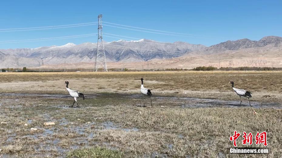 圖為黑頸鶴群在互相觀望。烏蘭縣融媒體中心 供圖