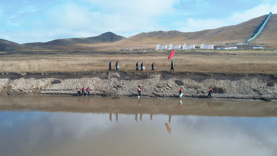 “今天巡護(hù)20公里,主要任務(wù)是清理垃圾、漁網(wǎng),給村民做宣傳工作。大家注意安全!”黃河護(hù)河隊(duì)中隊(duì)長(zhǎng)作瑪木安排好當(dāng)天工作內(nèi)容。海拔3000多米的高原上,早上氣溫只有2攝氏度。隊(duì)員們迅速拿起耙子、垃圾袋、夾子等,步行繞過(guò)白河大橋,來(lái)到岸邊。