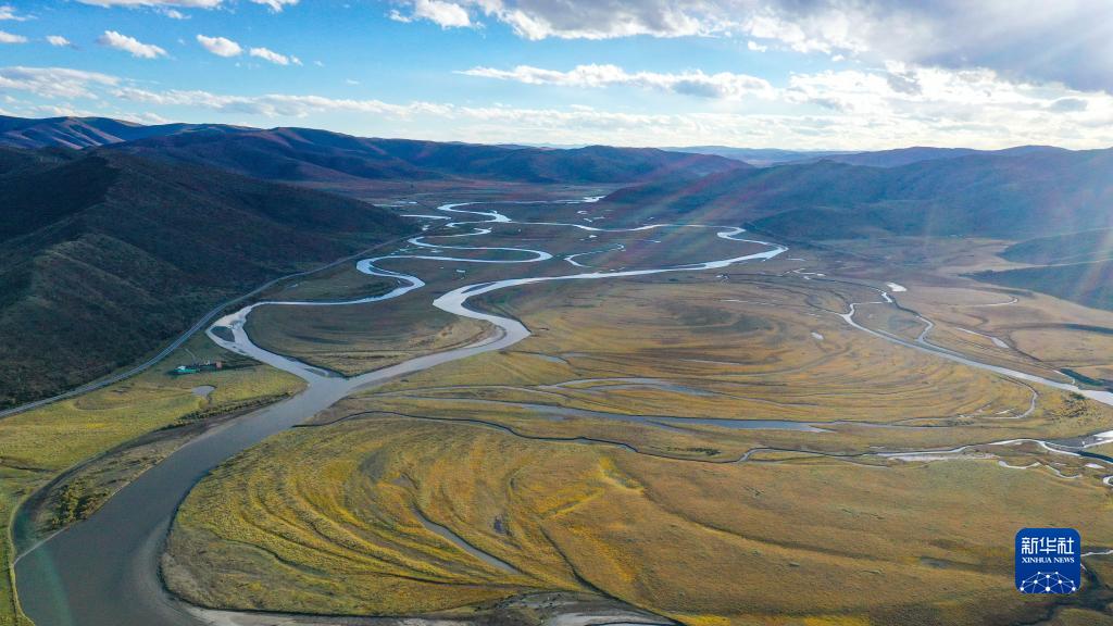 這是10月19日在四川省阿壩藏族羌族自治州若爾蓋縣拍攝的熱曲河(無(wú)人機(jī)照片)。新華社記者 王曦 攝