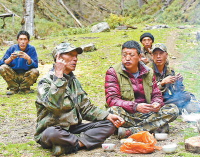 以前,從小在山林間長大的父親也很少看到猴子的蹤影,只能撿些糞便了解猴群的健康狀況。后來,余忠華跟著父親親眼見到了可愛的滇金絲猴,在父親的影響下,他也加入了護(hù)林員的隊伍,至今已18年。