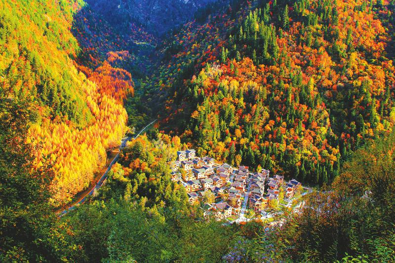 10月下旬是黑水縣彩林最美的時節(jié)。依托彩林資源,黑水縣沙石多鎮(zhèn)羊茸村整村搞起鄉(xiāng)村旅游。黑水縣委宣傳部供圖(資料圖片)