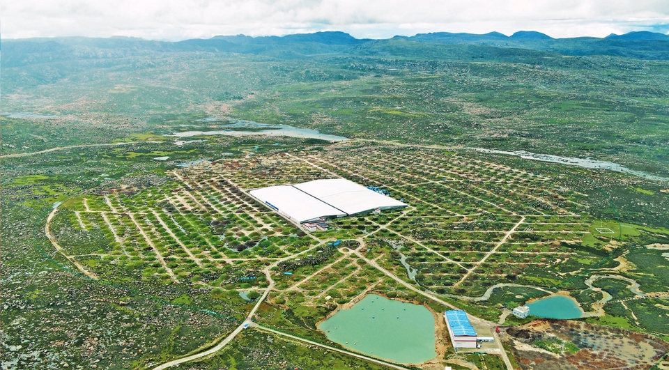 10月21日,科研人員行走在水切倫科夫探測器的屋頂上。遠方的每個大概36平方米的土堆是拉索的繆子探測器,放置了裝有超純水的高反射率水袋。
