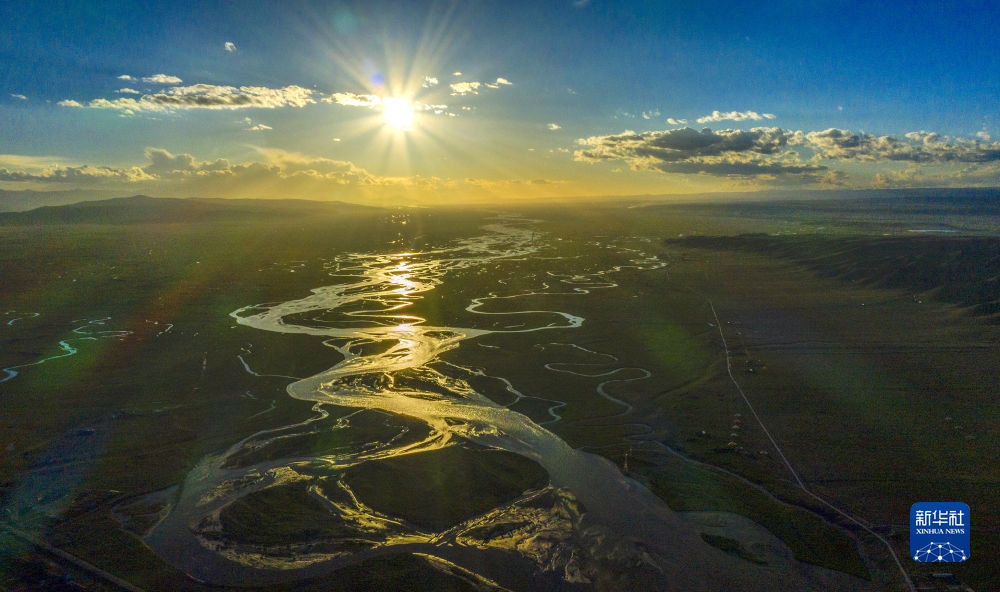 這是青海湖布哈河濕地一景(2020年7月18日攝,無人機照片)。新華社 楊濤 攝
