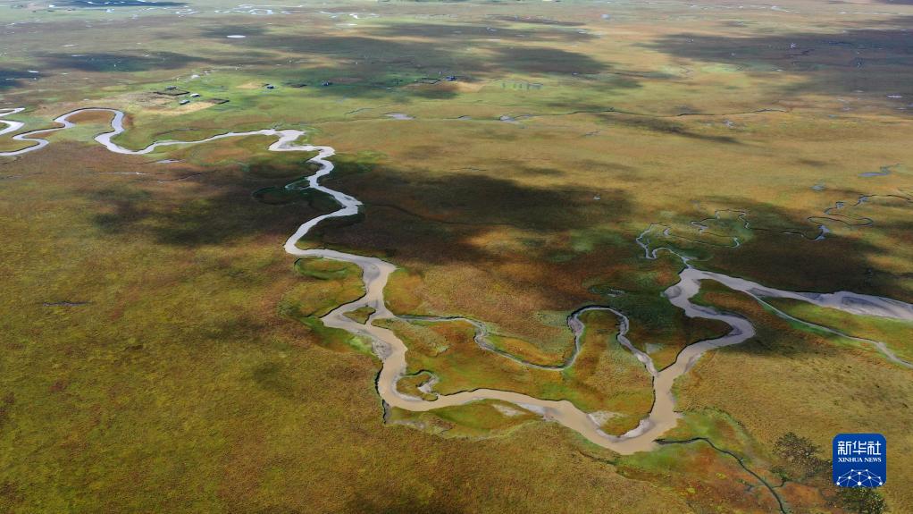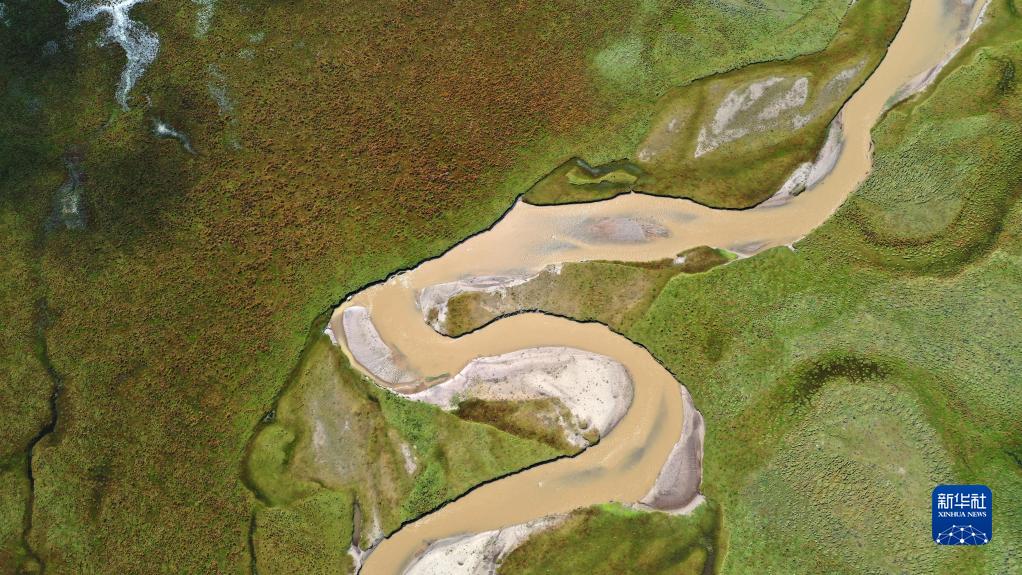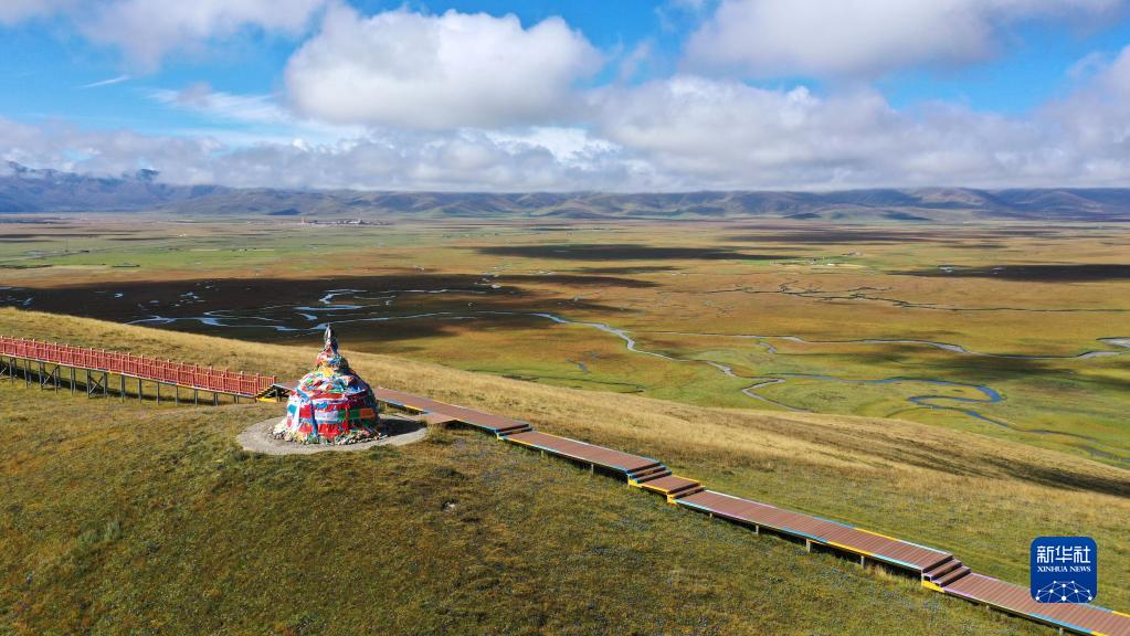 這是2022年9月21日拍攝的瑪曲縣阿萬倉濕地(無人機(jī)照片)。新華社記者 陳斌 攝