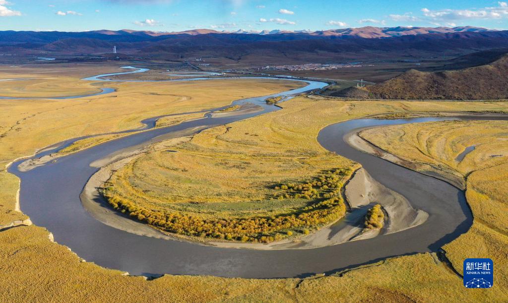這是2022年10月19日在四川省阿壩藏族羌族自治州若爾蓋縣拍攝的熱曲河(無人機照片)。新華社記者 王曦 攝