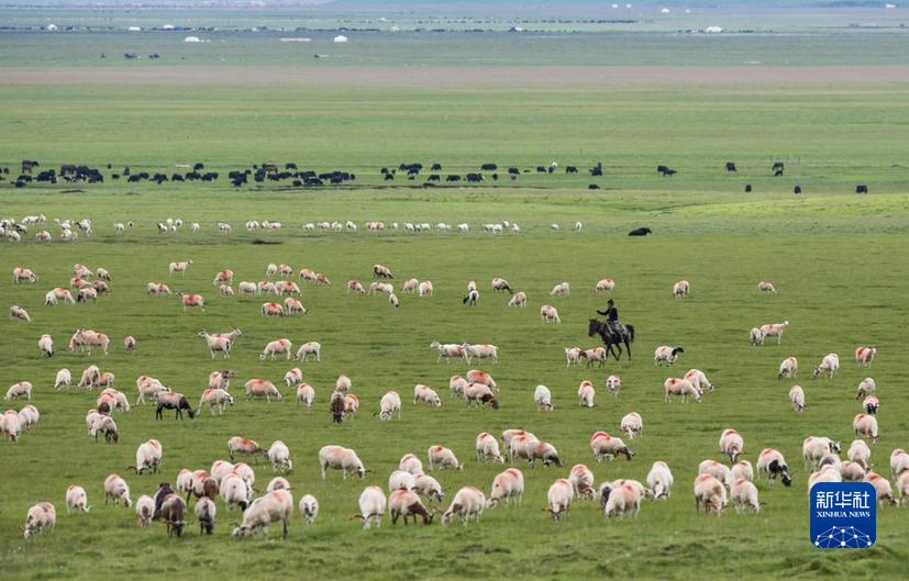 牛羊徜徉在四川若爾蓋濕地國家級自然保護區(qū)里(2022年7月25日攝)。新華社記者 江宏景 攝