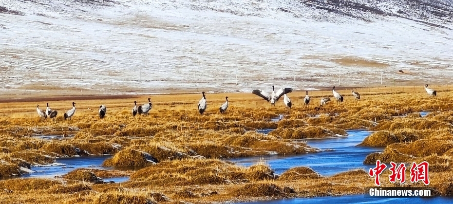 青海隆寶國家級自然保護區(qū)記錄116只黑頸鶴集群