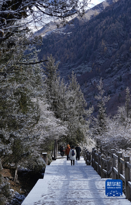 11月8日,游客在四姑娘山長坪溝景區(qū)內游覽。新華社記者 劉瓊 攝