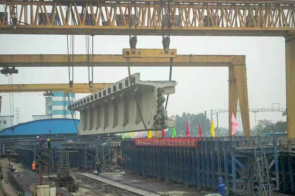11月17日,記者從成蘭鐵路有限公司獲悉,成蘭鐵路什邡制梁場最后一片T梁順利澆筑完成,標志著成都至川主寺(黃勝關)段全線T梁生產任務全部完成,為全線貫通打下堅實基礎。