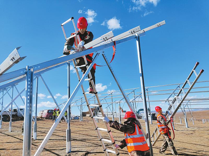 柯拉光伏電站處于高寒高海拔地區(qū),風(fēng)力強(qiáng)、降雪多、晝夜溫差大,意味著光伏支架要承受多種復(fù)雜載荷?!斑@對(duì)光伏支架基礎(chǔ)施工質(zhì)量及其連接部件強(qiáng)度有著很高的要求?!睏钪緜ケ硎?,需要攻堅(jiān)克難闖過(guò)三大關(guān)卡——